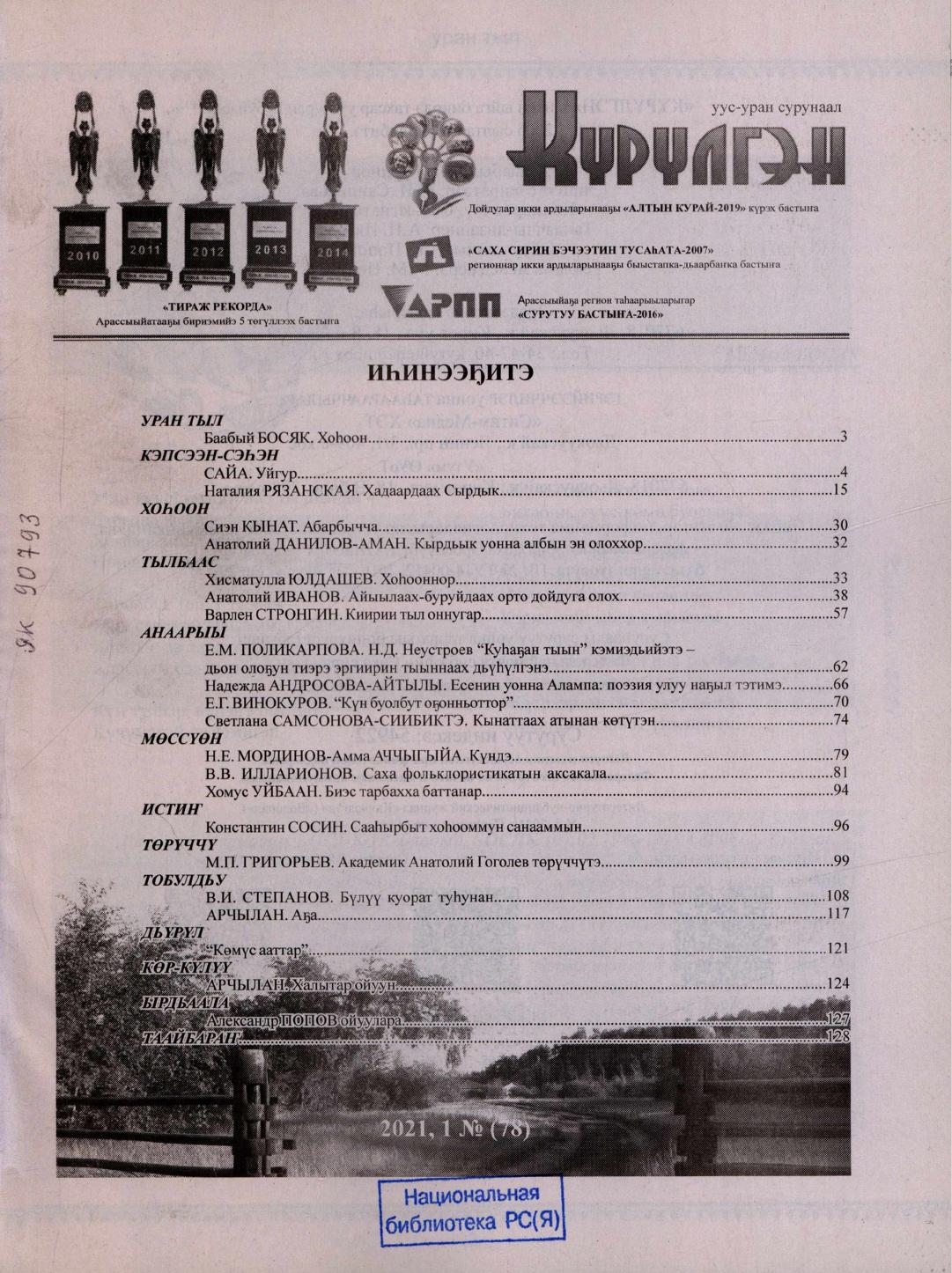 - Периодические издания Якутии (конец XIX – XXI вв.) > Журналы > «Күрүлгэн»: уус-уран сурунаал > 2021,