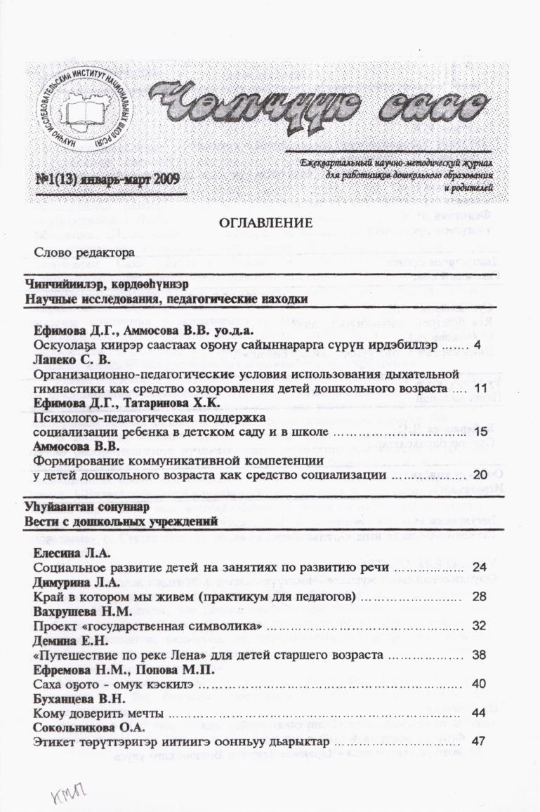 Чөмчүүк саас : дошкольный возраст. научно-методический журнал для работников дошкольного образования и родителей / . - Якутск : НИИНШ, 2006 -.