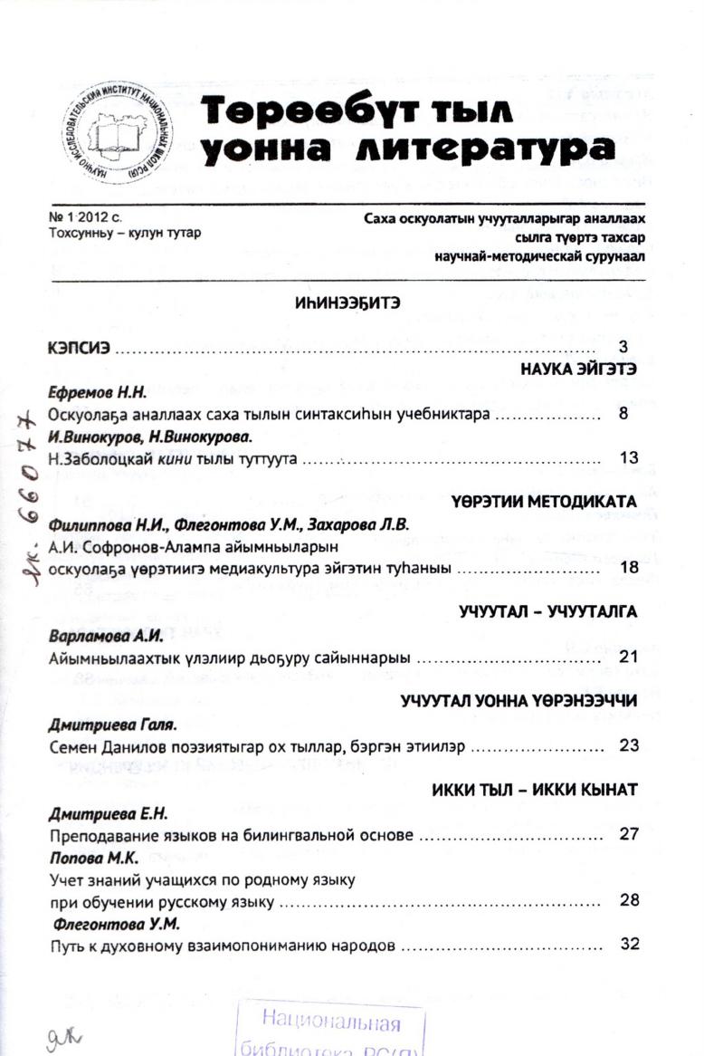 - ШКОЛА > Периодика > Учебно - методическая > Төрөөбүт тыл уонна литература.