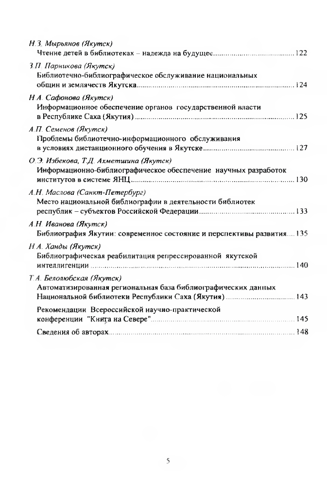 Книга на Севере : материалы Всероссийской научно-практической конференции, 3-5 ноября 1998 г. / [редколлегия: Е. Б. Артемьева (ответственный редактор), С. А. Пайчадзе, Г. Ф. Леверьева и др.]. - Якутск ; Новосибирск : ГПНТБ СО РАН, 1999. - 150 с.