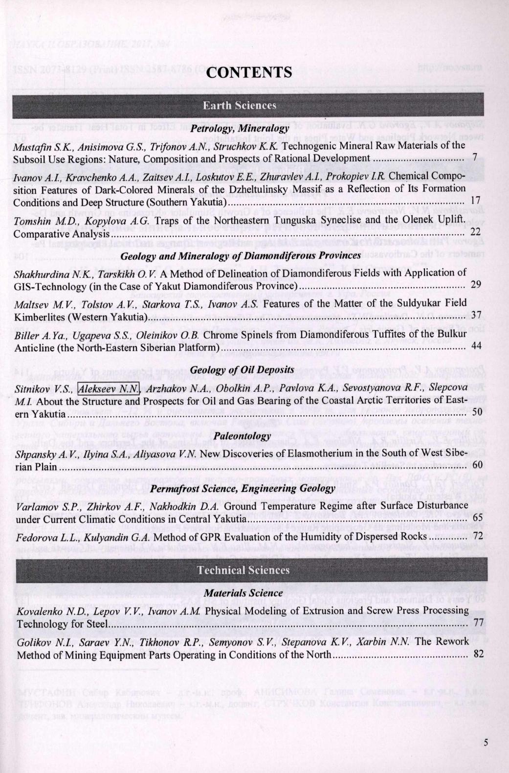 Наука и образование : научный и общественно-политический журнал / учредители: Академия наук Республики Саха (Якутия), Якутский научный центр СО РАН, Северо-Восточный федеральный университет им. М. К. Аммосова, Министерство образования и науки Республики Саха (Якутия) ; главный редактор И. И. Колодезников. – 1996- . – Якутск : АН РС (Я), 1996-2017. – Выходит 4 раза в год. – ISSN 2073-8129 (print). — 2017. — N 4 (88), октябрь-декабрь. — 150 с.