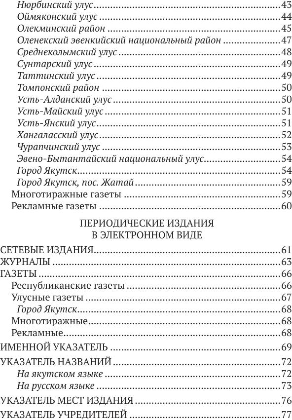 Периодические издания Республики Саха (Якутия) : государственный библиографический указатель = Саха Өрөспүүбүлүкэтин периодическай таһаарыылара : судаарыстыбаннай библиографическай ыйынньык / Министерство культуры и духовного развития Республики Саха (Якутия), Национальная библиотека Республики Саха (Якутия), Национальное библиографическое агентство. - Электрон. дан. - Якутск : СРИД НИЦ НБ РС(Я), 2019- . 2021. - 2022. - 1 файл (84 с. ; 523 Кб).