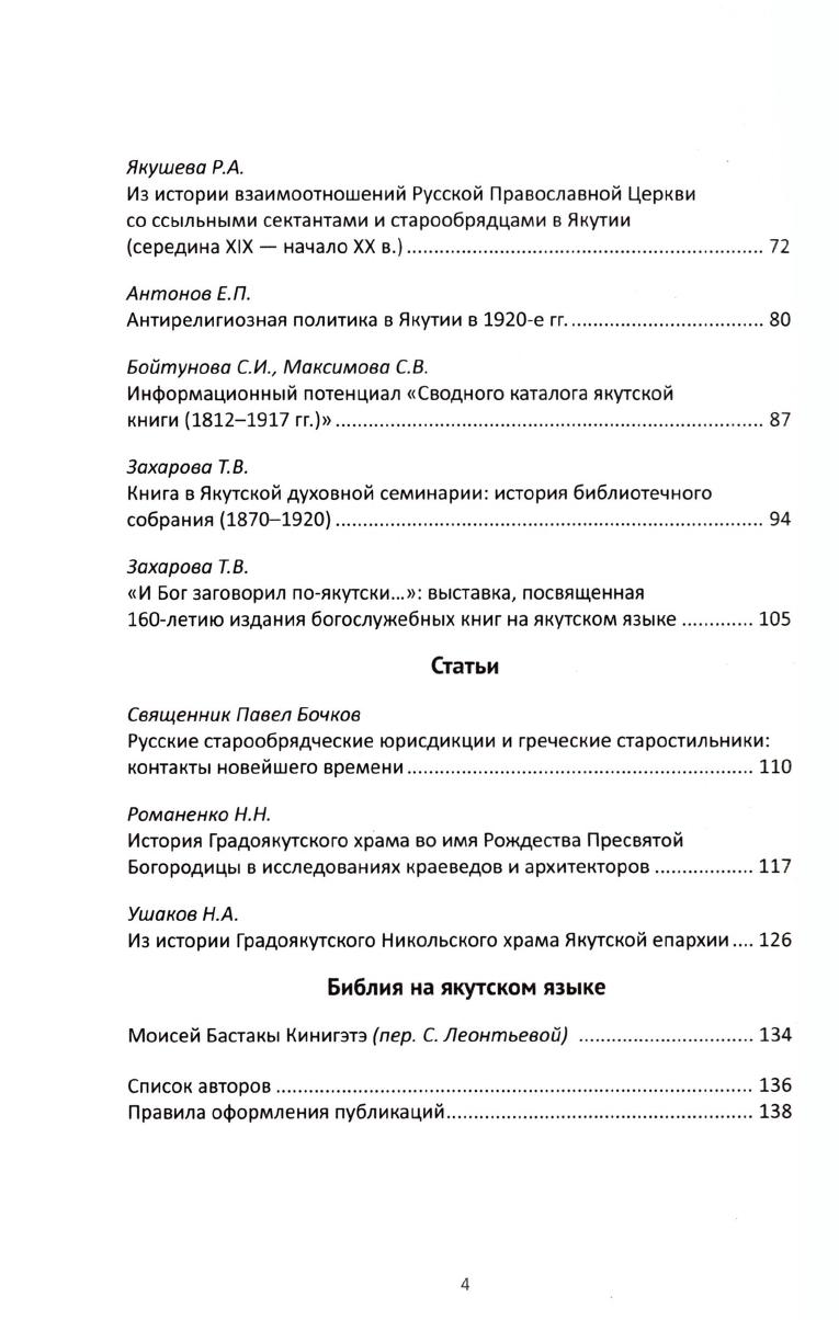 Якутская духовная семинария. Сборник трудов Якутской духовной семинарии = Collection of Research Papers of the Yakutsk Theological Seminary / Якутская и Ленская епархия Русской Православной Церкви ; [редколлегия: И. И. Юрганова (главный редактор), иеромонах Иларион (Варежкин), игумен Андрей (Мороз) и др.]. – Якутск : Якутский край, 2014 – . – ISSN 2686-9497.