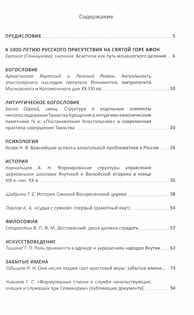 Якутская духовная семинария. Сборник трудов Якутской духовной семинарии = Collection of Research Papers of the Yakutsk Theological Seminary / Якутская и Ленская епархия Русской Православной Церкви ; [редколлегия: И. И. Юрганова (главный редактор), иеромонах Иларион (Варежкин), игумен Андрей (Мороз) и др.]. – Якутск : Якутский край, 2014 – . – ISSN 2686-9497.