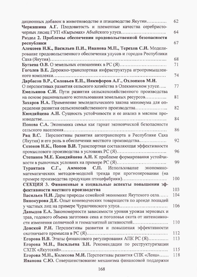 Местное производство: как поднять его эффективность? : (материалы IV республиканской научно-практической конференции, состоявшейся 14 июня 2001 г. в г. Якутске) / редакционная коллегия: А. М. Гатаулин, Н. Н. Тихонов, А. В. Чугунов, М. У. Тимофеев. - Москва : Издательство МСХА, 2001. - 172 с. : ил., табл. ).