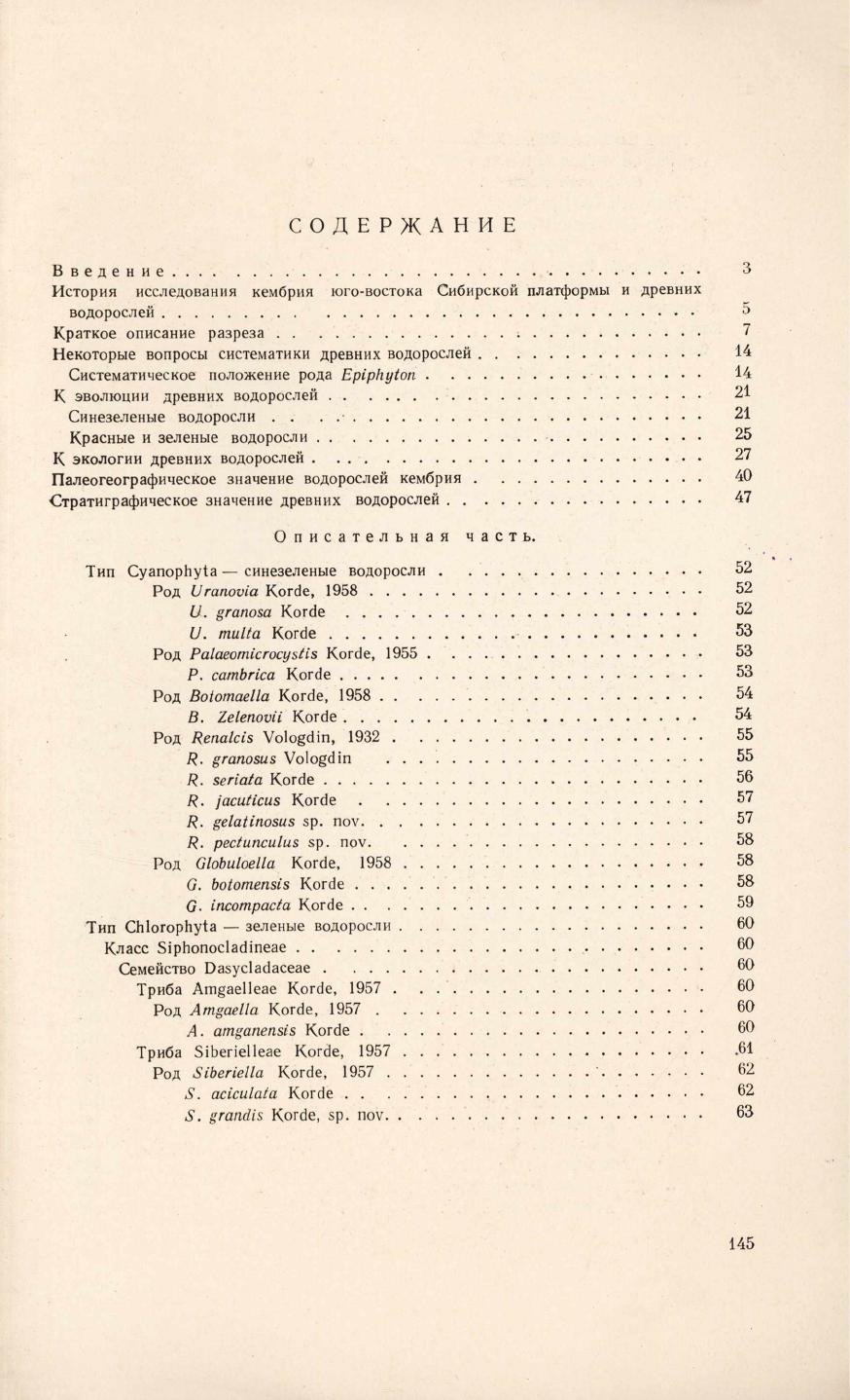 Водоросли кембрия юго-востока Сибирской платформы / К. Б. Кордэ ; ответственный редактор А. Г. Вологдин ; Академия наук СССР. - Москва : АН СССР, 1961. - 146, [1] с., [16] л. ил.