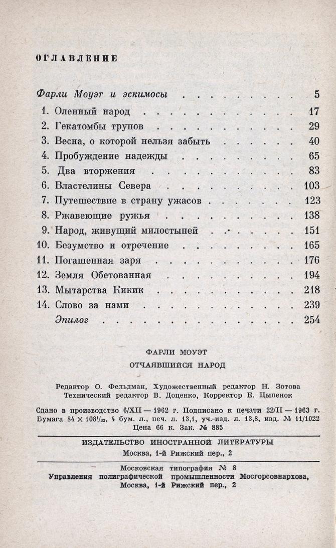 Отчаявшийся народ / Фарли Моуэт ; перевод с английского Л. Н. Карпова, И. А. Тихомирова ; предисловие и редакция Г. А. Аграната. - Москва : Издательство иностранной литературы, 1963. - 254, [2] с.