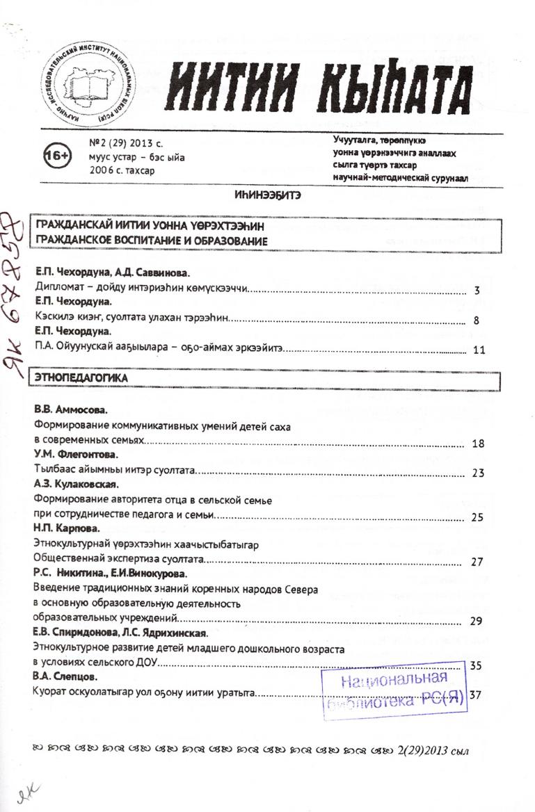 - 3. Иитии кыһата: учууталга, төрөппүккэ уонна үөрэнээччигэ аналлаах сылга түөртэ тахсар научнай-методическай сурунаал, 2013, №4 (31) (алтынньы - ахсынньы ый)