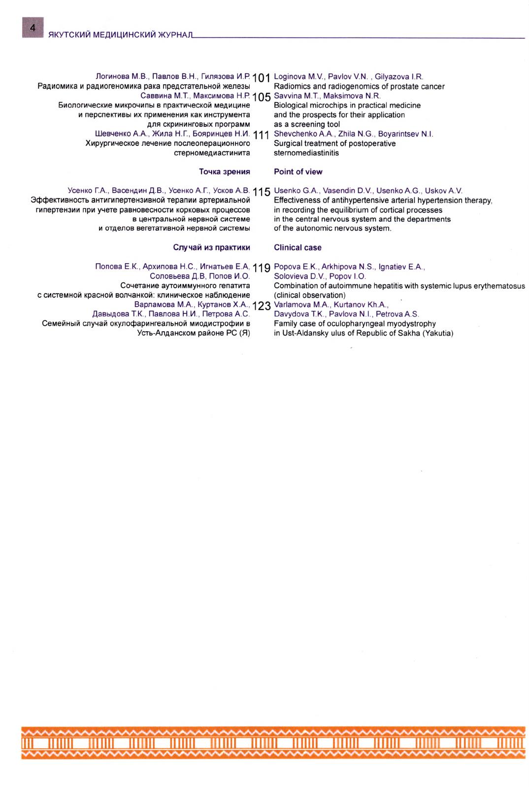 Якутский медицинский журнал / научно-практический журнал Якутского научного центра Российской Академии медицинских наук и Правительства Республики Саха (Якутия) ; главный редактор А. Н. Романова. – 2003 - . – Якутск : Сахаполиграфиздат, 2003 - . – Выходит 4 раза в год. – ISSN 1813-1905 (print). – ISSN 2312 (online). – 2021, N 1 (73)