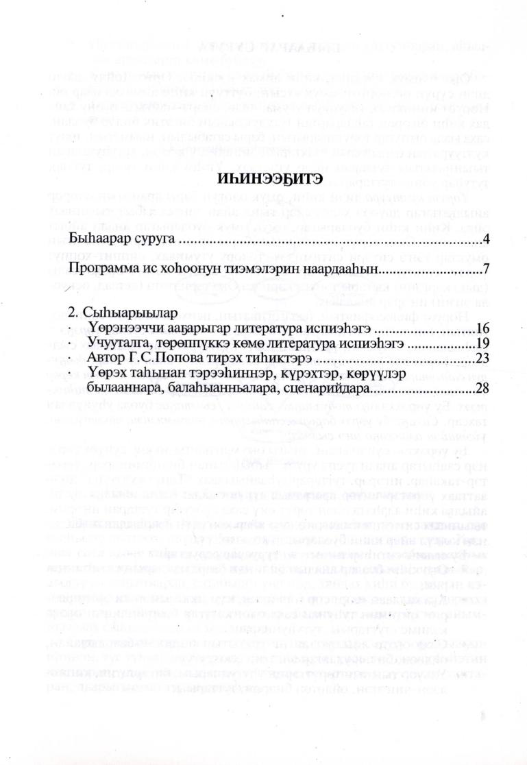 Төрүт култуура : I-II сүһүөх оскуола үөрэҕин программата / Г. С. Попова-Санаайа ; Саха Өрөспүүбүлүкэтин үөрэҕин минитиэристибэтэ, ФНГТ "Төрүт омуктар оскуолаларын чинчийэр институт". - Дьокуускай : Дани Алмас, 2007. - 47, [1] с.