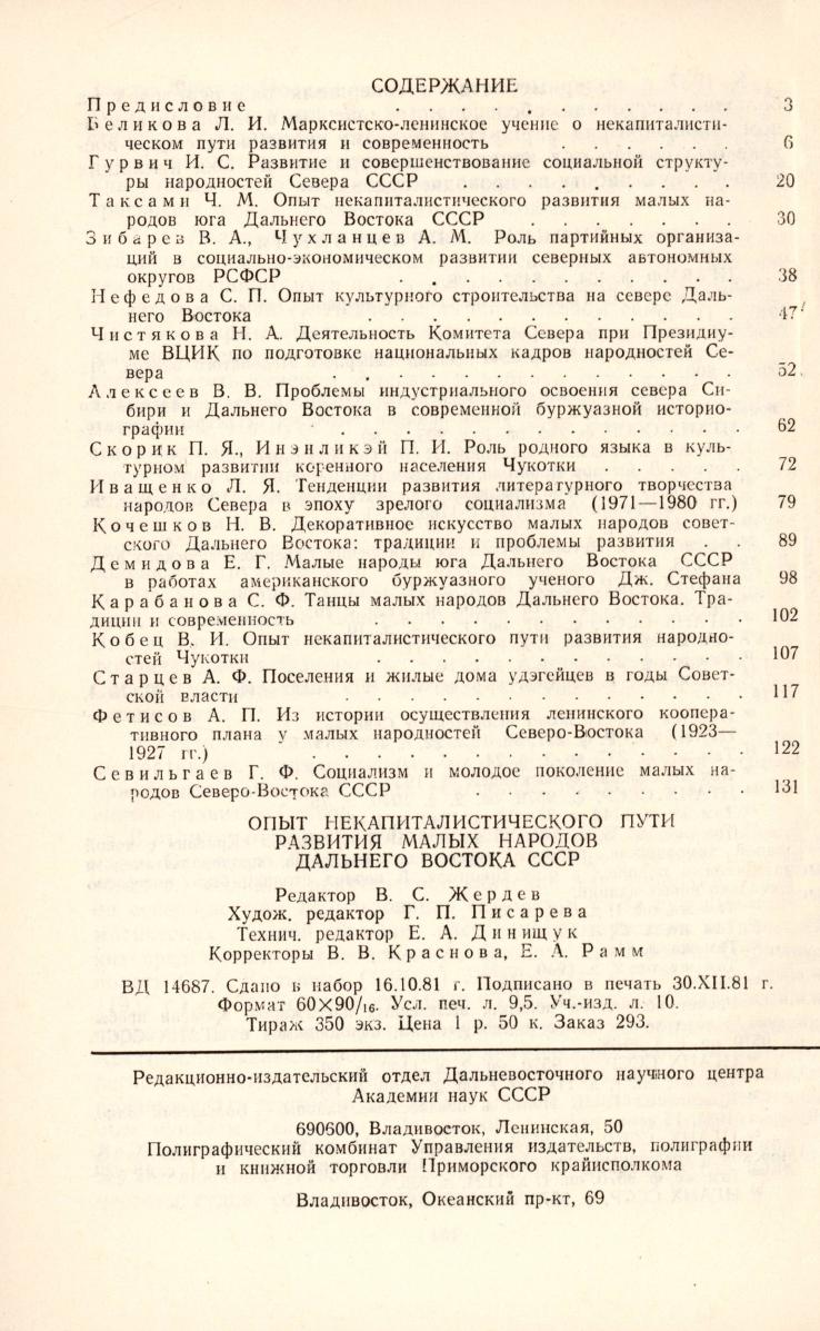 Опыт некапиталистического пути развития малых народов Дальнего Востока СССР : [материалы научной конференции, 15-16 октября 1980 г., Анадырь] / Под общей редакцией чл.-корр. АН СССР А. И. Крушанова. - Владивосток : ДВНЦ АН СССР, 1981. - 151, [1] с.