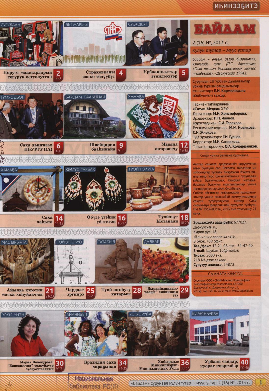 - 1. Байдам: тыа сирин хоһуун дьонун суолдьут сурунаала, 2013, №1 (15) (тохсунньу-олунньу)