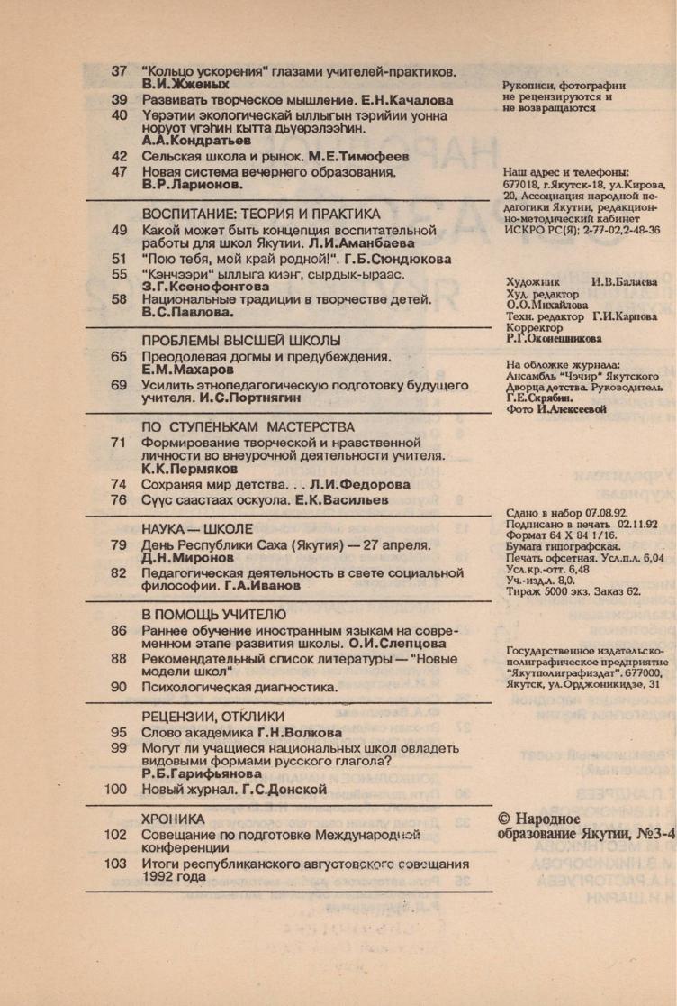 - Периодические издания Якутии (конец XIX – XXI вв.) > Журналы > Народное образование Якутии > 1992,