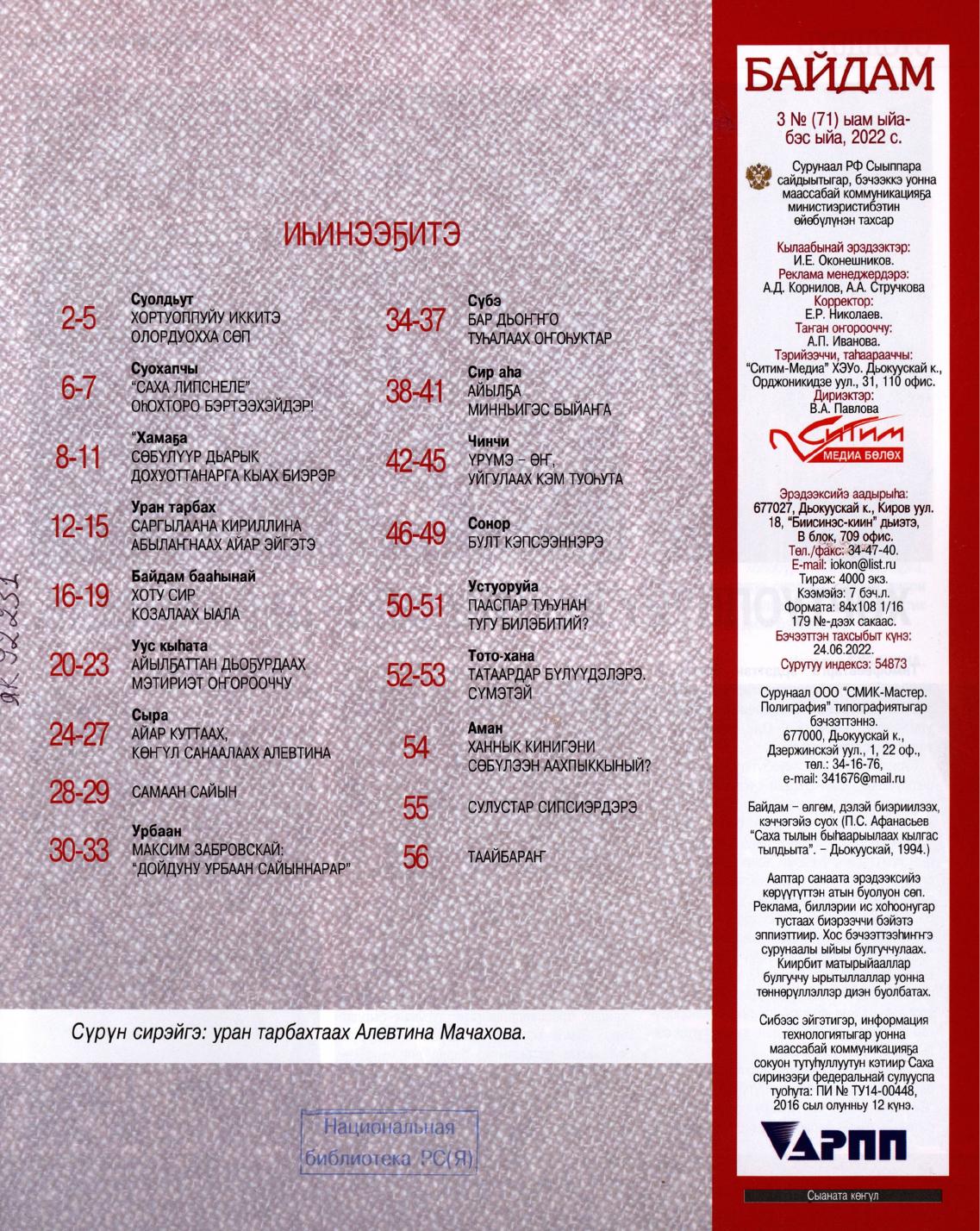 N 3 (71), ыам ыйа - бэс ыйа. - 2022. - 56 с.