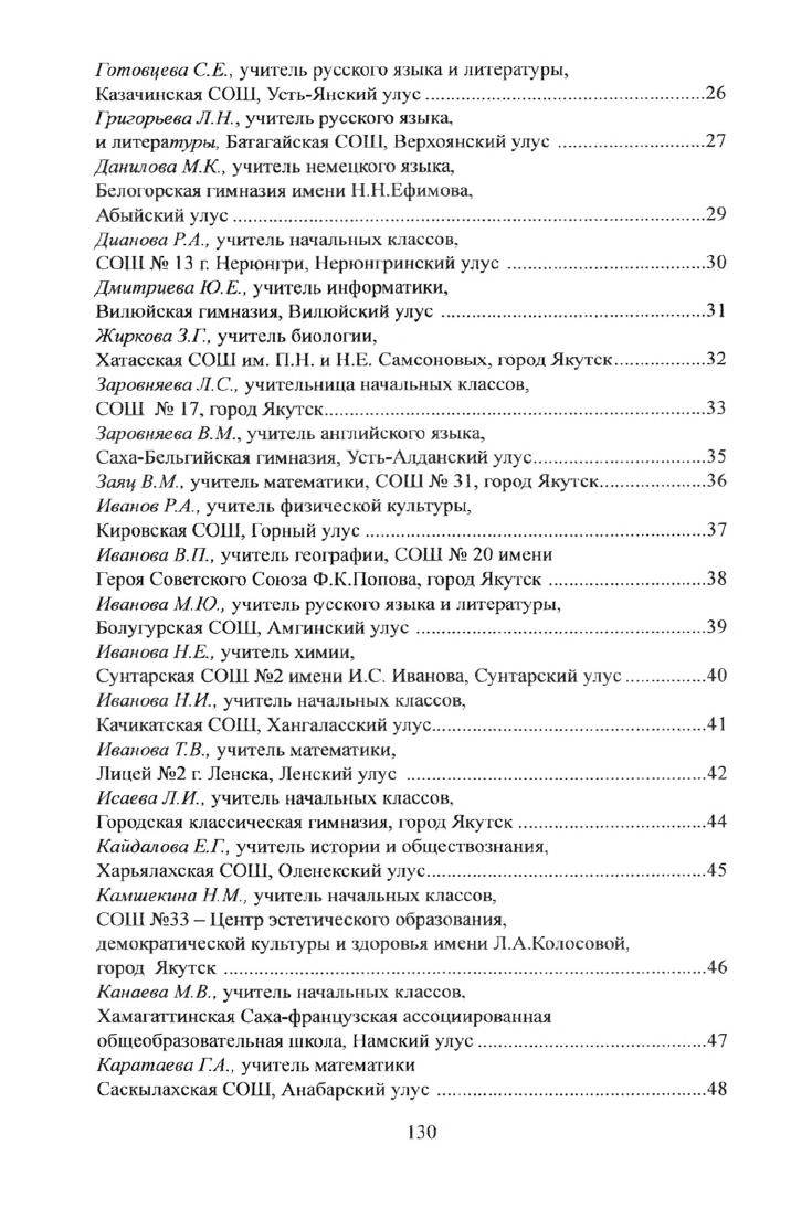Письма лучших учителей Президенту, обществу и государству : обращение педагогов-победителей конкурса лучших учителей в рамках приоритетного национального проекта "Образование" / Министерство образования Республики Саха (Якутия), Институт повышения квалификации работников образования им. С. Н. Донского-II ; [творческая группа: Ф. В. Габышева и др.]. - Якутск : Изд-во ИПКРО, 2006 -. Педагогам-победителям конкурса "Лучших учителей" предоставлена уникальная возможность - написать "Письмо Президенту, обществу, государству", в котором выразить свои чувства, переживания, надежды, высказать предложения и пожелания, слова благодарности, одним словом - заявить свою гражданско-педагогическую позицию. Жанровая специфика, стилистическая принадлежность "Писем" различна. В качестве адресата выступает Президент Российской Федерации, Президент Республики Саха (Якутия), министр образования Российской Федерации, министр образования Республики Саха (Якутия), представители гражданских институтов, осуществлявших общественную экспертизу, педагогическое общество, ученики, родительская общественность... Вып. 3. - 2008. - 133, [1] с. Часть текста якут. - 200 экз.