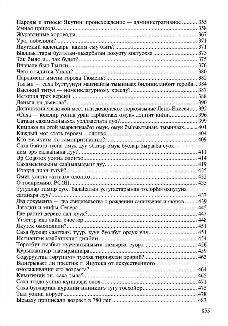 В данном сборнике публикуются научные и научно-популярные статьи, отзывы, рекомендации ученого-этнографа С. И. Николаева-Сомоготто (1923-2004 гг.), написанные с 1962 по 2004 годы. Автор на основе обобщения разнообразных лингвистических, фольклорных и топонимических данных, археологических и этнографических полевых материалов, архивных источников приходит к оригинальным спорным выводам и наблюдениям в области этногенеза, хозяйственной жизни, культура, языка, традиционных верований, фольклора якутского народа