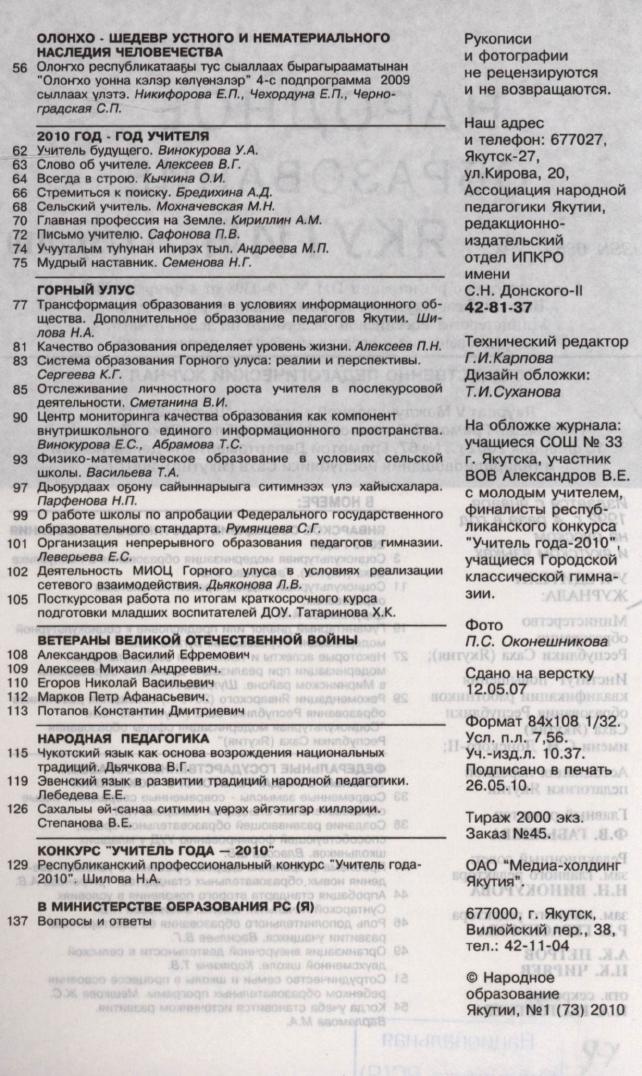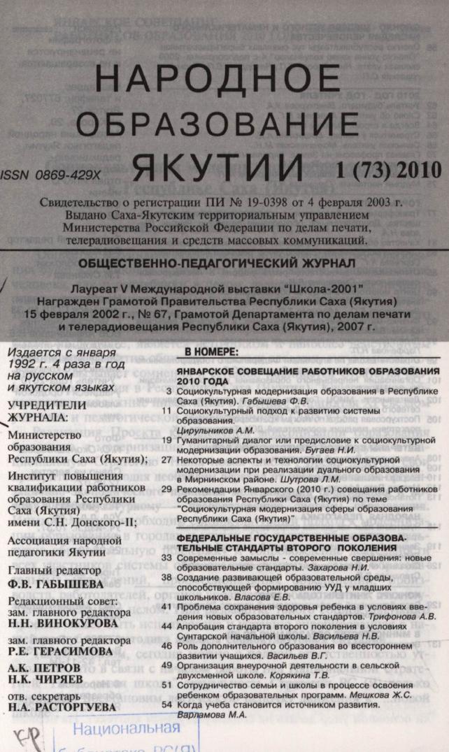 - ШКОЛА > Периодика > Учебно - методическая > Народное образование Якутии,