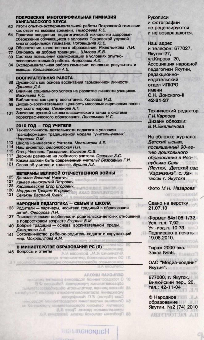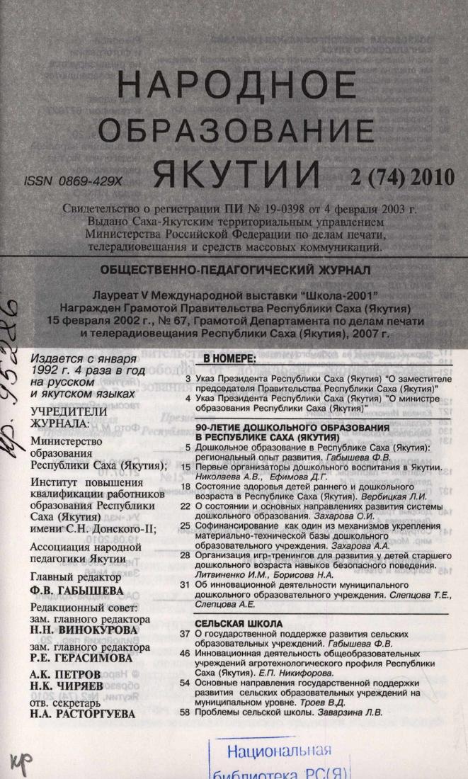 - Периодические издания Якутии (конец XIX – XXI вв.) > Журналы > Народное образование Якутии > 2010,