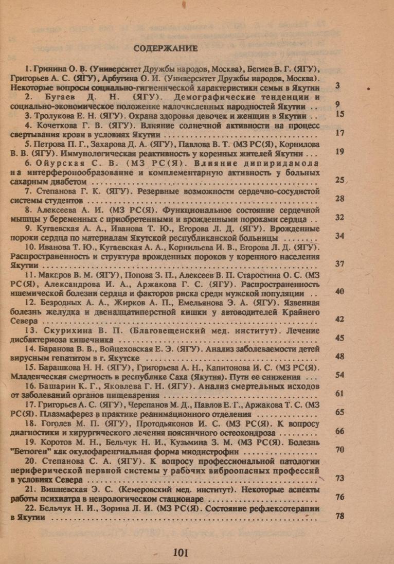 В сборнике рассматриваются социально-гигиеническая характеристика семьи в Якутии, демографические тенденции и социально-экономическое положение малочисленных народностей, приводятся новые сведения по распространенности сердечно-сосудистой, неврологической патологии, анализируется эффективность работы лечебных учреждений, рекомендуются более совершенные организационные формы