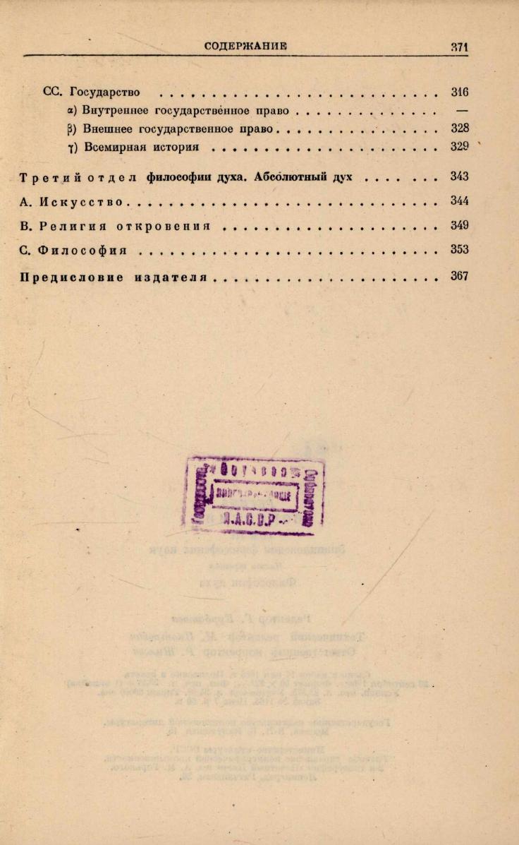Сочинения / Гегель ; Академия наук СССР, Институт философии. - Москва : [Госполитиздат], 1956. Т. 3: Энциклопедия философских наук : часть третья. Философия духа / перевод Б. А. Фохта. - 1956. - 371 с., [1] л. портр.